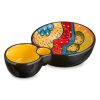Schitterende Spaans hand geschilderde keramiek rond tapas schaaltje van 7 cm. Het aardewerk dat is gebruikt voor dit schaaltje is uniek voor Andalusië. Deze wordt eerst één keer gebakken, vervolgens met de hand beschilderd en geglazuurd en vervolgens nog een keer gebakken op een temperatuur van 950 graden. Dit is net wat warmer dan het meeste gebakken aardewerk waardoor het aan sterkte wint.